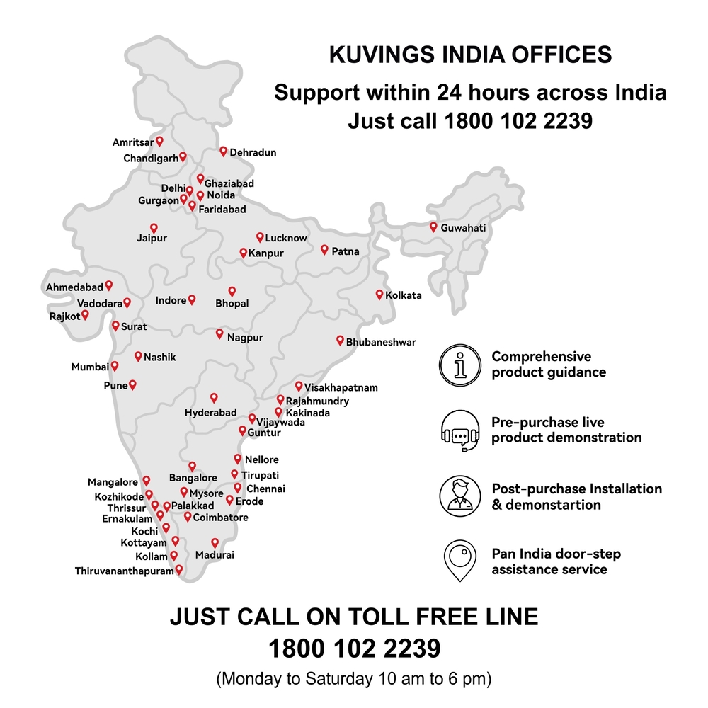 All Kuvings Cold Press Juicers come with a complete 10 year replacement warranty on Motor and Gear (Best-in-Class warranty in Cold Press Juicer Industry) and 1 year warranty on all other parts. We confidently claim that Kuvings Products are built using best quality material and world class design practices. Some stand-out qualities of Kuvings Cold Press Juicer are