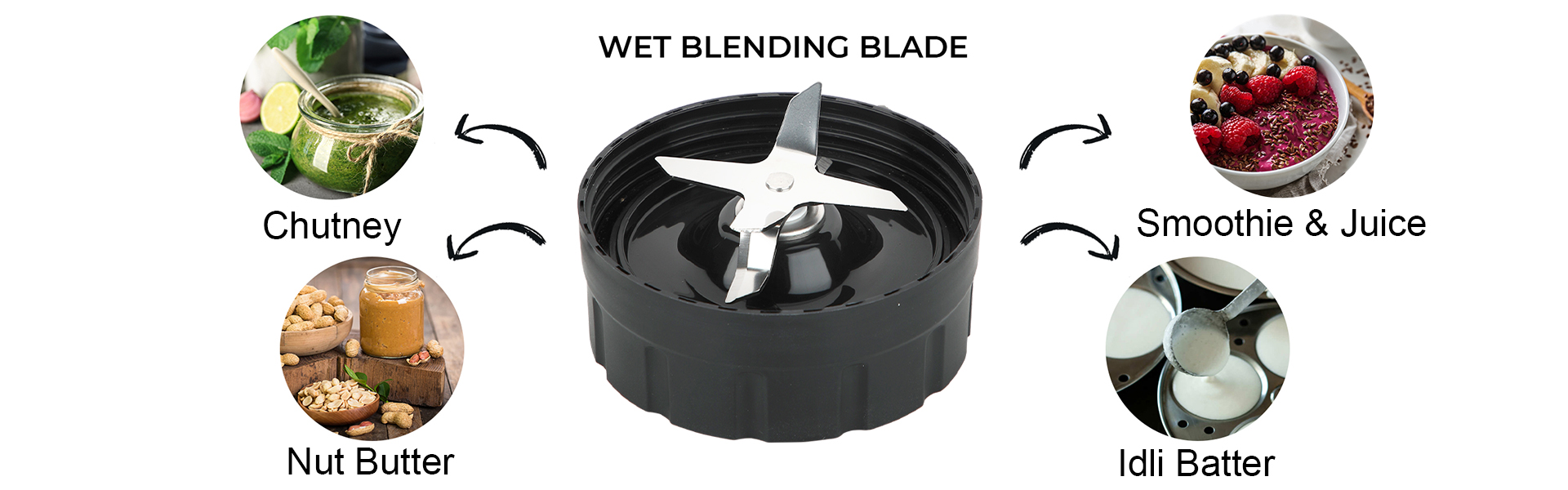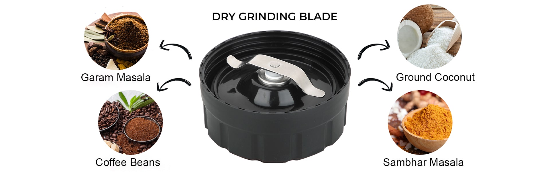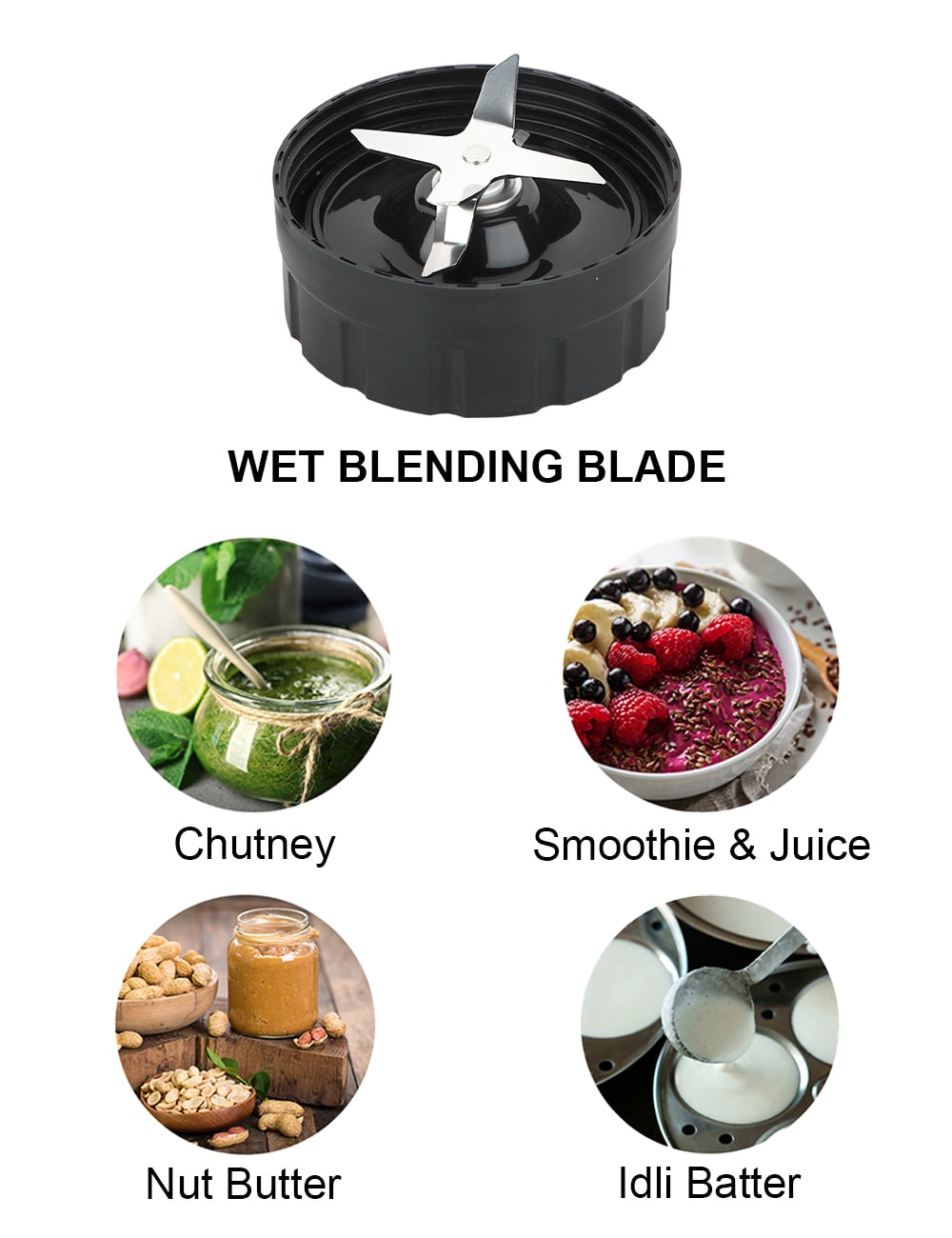Special 2 types of Blades: Dry grinding blade and wet blending blade.